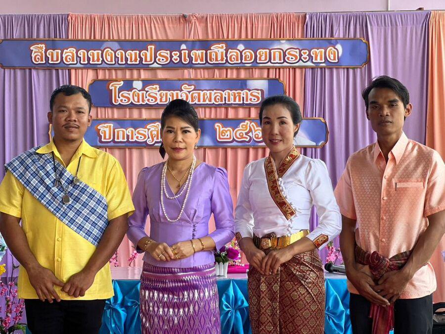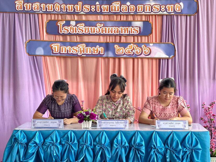 วันจันทร์ที่ ๒๗ พฤศจิกายน ๒๕๖๖ โรงเรียนวัดผลาหาร นำโดยนางสาวศรัณย์ภัทร ประทุมชาติ ผู้อำนวยการโรงเรียน และคณะครู ร่วมกันจัดกิจกรรมสืบสานงานประเพณีลอยกระทง ประจำปีการศึกษา ๒๕๖๖ เพื่อให้นักเรียนได้รู้จักการอนุรักษ์ขนบธรรมเนียมประเพณี วัฒนธรรมอันดีงาม ประกอบไปด้วยกิจกรรมการประกวดการทำกระทงและการประกวดนางนพมาศ S:0