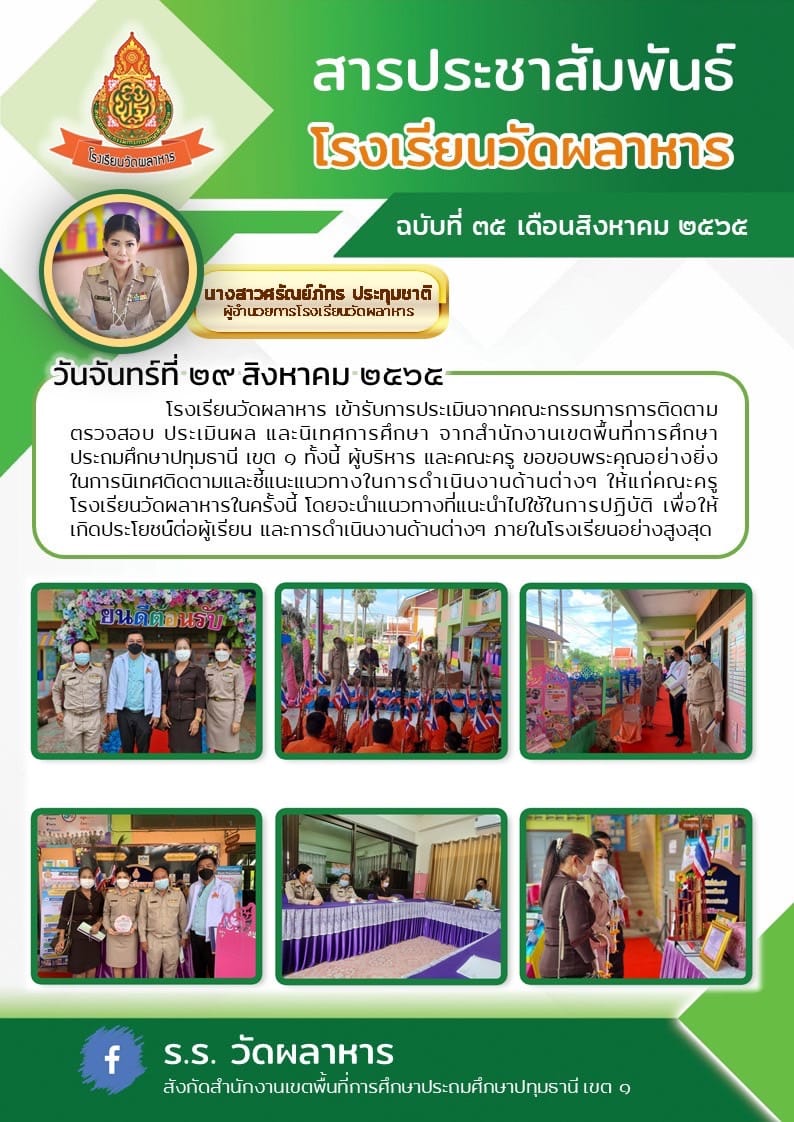 โรงเรียนวัดผลาหาร เข้ารับการประเมินจากคณะกรรมการติดตาม ตรวจสอบ ประเมินผล และนิเทศการศึกษา