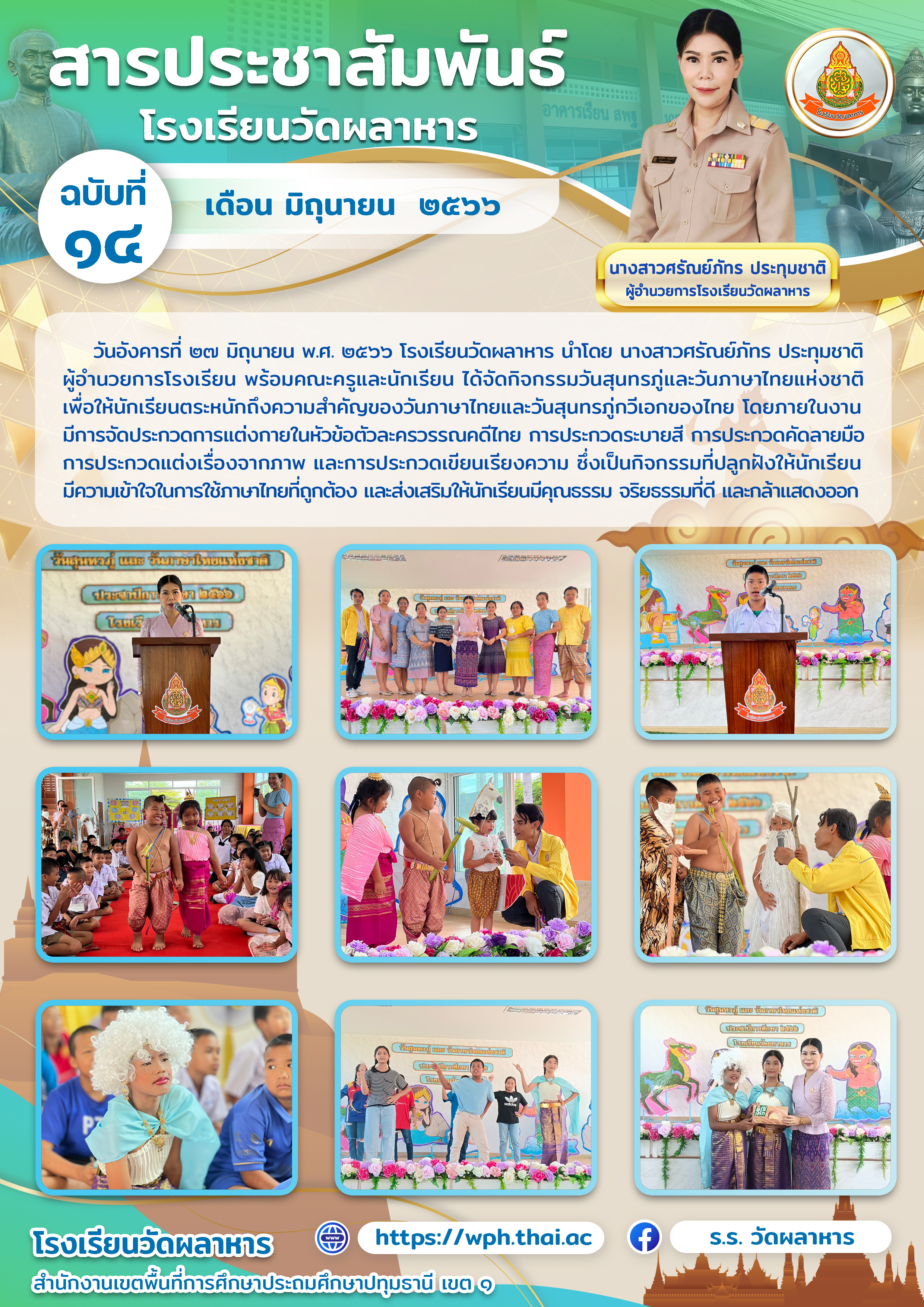 กิจกรรมวันสุนทรภู่และวันภาษาไทยแห่งชาติ ประจำปีการศึกษา ๒๕๖๖
